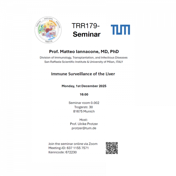 We are delighted to welcome Matteo Iannacone for a seminar here in Munich about "Immune Surveillance of the Liver“.