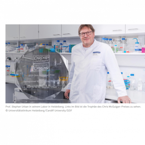 Prof. Dr. Dr. h.c. Stephan Urban, TRR project leader of TP15 at Heidelberg University's Medical Faculty, was honored with the McGuigan Award for Distinguished Work in Drug Discovery. Congratulations!
